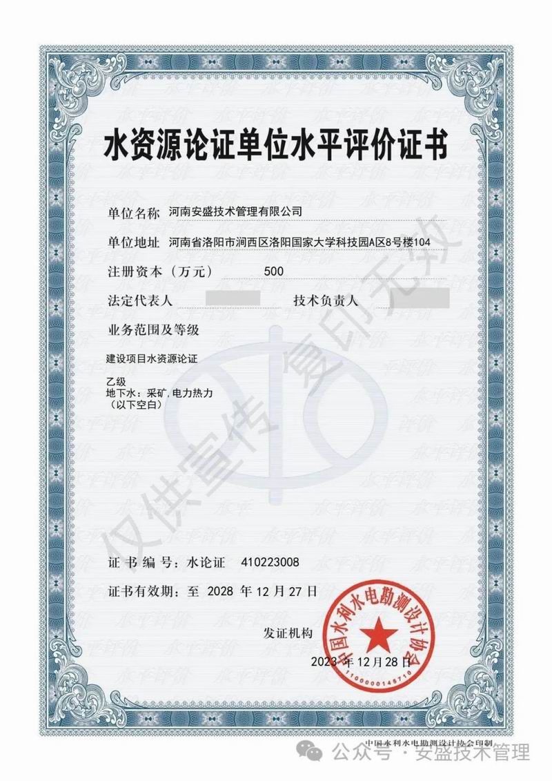 熱烈祝賀我司榮獲水資源論證單位水平評(píng)價(jià)乙級(jí)證書